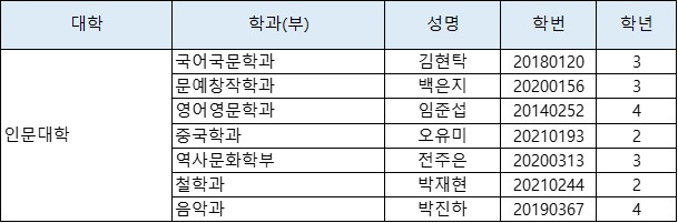 | [2022학년도 1학기] DEAN’S LIST 선정자 안내 | |