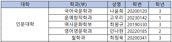 | [2023학년도 2학기] DEAN’S LIST 선정자 안내 | |