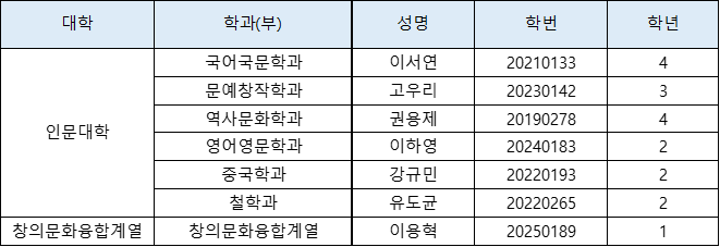 | [2025학년도 2학기] DEAN’S LIST 선정자 안내 | |